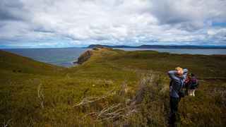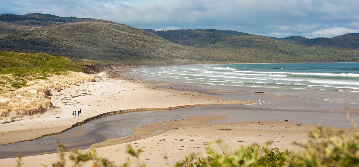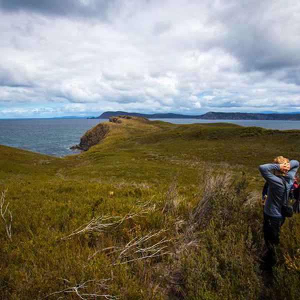 Today’s walk is East Cloudy Head for views of Tasmania’s far south and the wild Southern Ocean. The five-hour (14km) journey begins by walking the length of Cloudy Bay Beach. Windswept and beautiful, the walk then leads us into coastal heath and up toward spectacular views of Bruny Island’s rugged south coast.
