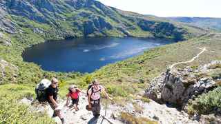 We climb the steepest section of the whole Overland Track today, fuelled by a hearty lunch. Reaching Marion’s Lookout (1250m) takes about an hour, with steps leading through steeper sections. The reward, providing weather conditions allow, is staggering views of Cradle Mountain and Dove Lake. Every uphill step is worth it.