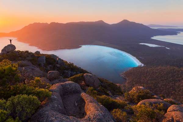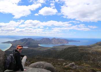 Over breakfast we decide whether we ascend Mt Graham and take the high route to Wineglass Bay or opt for the less challenging but equally stunning coastal section of the Freycinet Peninsula circuit track. The former sees us head inland from the shores of Cooks Beach and ascend through tall Tasmanian Blue Gum forests before traversing the button grass fields of the East Freycinet Saddle, dotted with seasonal wildflowers. The trail descending from Mt Graham and Mt Freycinet takes in spectacular coastal views including iconic Wineglass Bay.