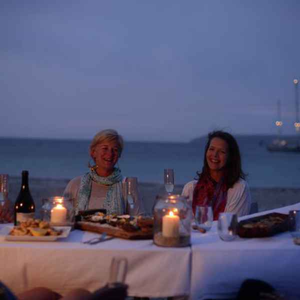 Tonight we enjoy a luxury barefoot beach dinner on the private shores of Schouten Island. Ever finished a bushwalk to have a linen-topped table waiting with oysters and Tasmanian sparkling?