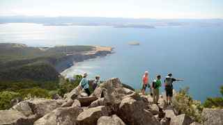 Today, we tackle our highest climb, the 630m ascent of Bishop & Clerk (4 to 5 hours return). As we traverse the high cliff edge of Fossil Bay, we are afforded sweeping views toward Schouten Island and Freycinet Peninsula, a glimpse of our journey to come. Perched high atop the dolerite columns of the summit, we enjoy lunch, with time to ponder the beauty and isolation of this island landscape.