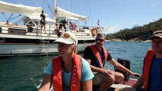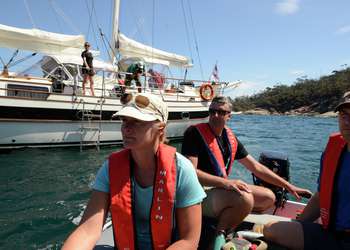 Arriving back at Fortescue Bay, we transfer via tender to our 23-metre (75-ft) luxury ketch, Lady Eugenie. This will be your floating home for the next five nights. Once aboard, enjoy a glass of wine with pre-dinner nibbles with the dramatic cliffs of Cape Hauy as our backdrop. A gourmet dinner of local Tasmanian delicacies will follow, prepared by your guide and yacht crew in the shelter of Fortescue Bay.