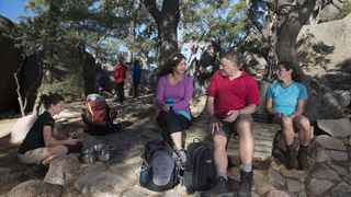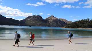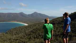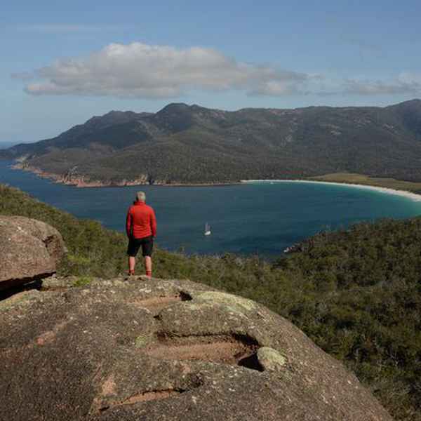 Over breakfast we decide whether we ascend Mt Graham and take the high route to Wineglass Bay or opt for the less challenging but equally stunning coastal section of the Freycinet Peninsula circuit track. The former sees us head inland from the shores of Cooks Beach and ascend through tall Tasmanian Blue Gum forests before traversing the button grass fields of the East Freycinet Saddle, dotted with seasonal wildflowers. The trail descending from Mt Graham and Mt Freycinet takes in spectacular coastal views including iconic Wineglass Bay.